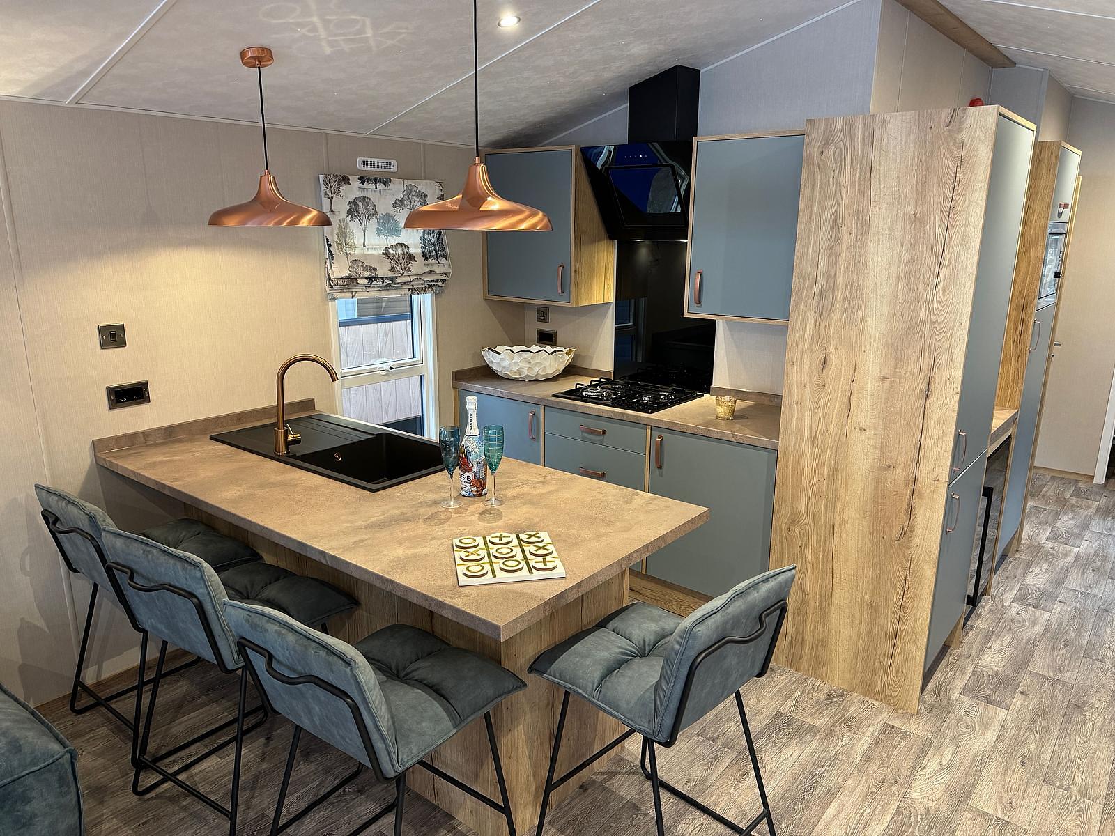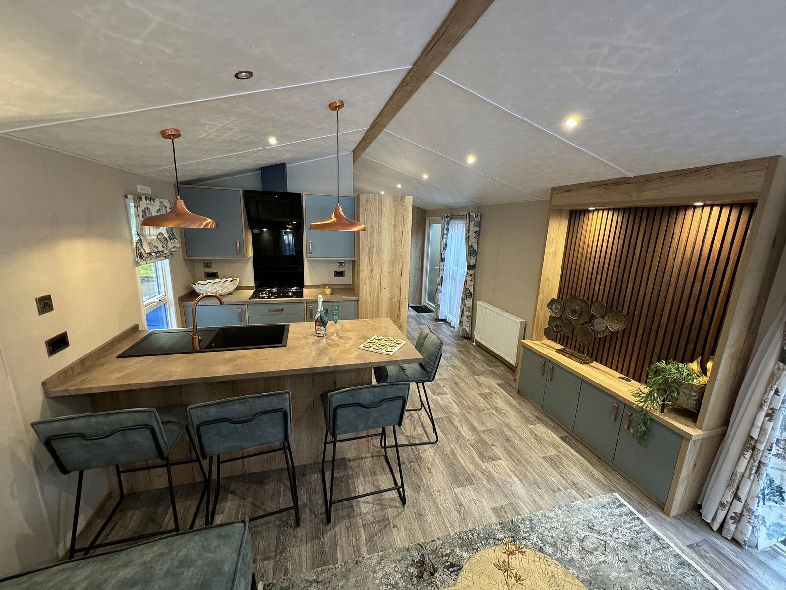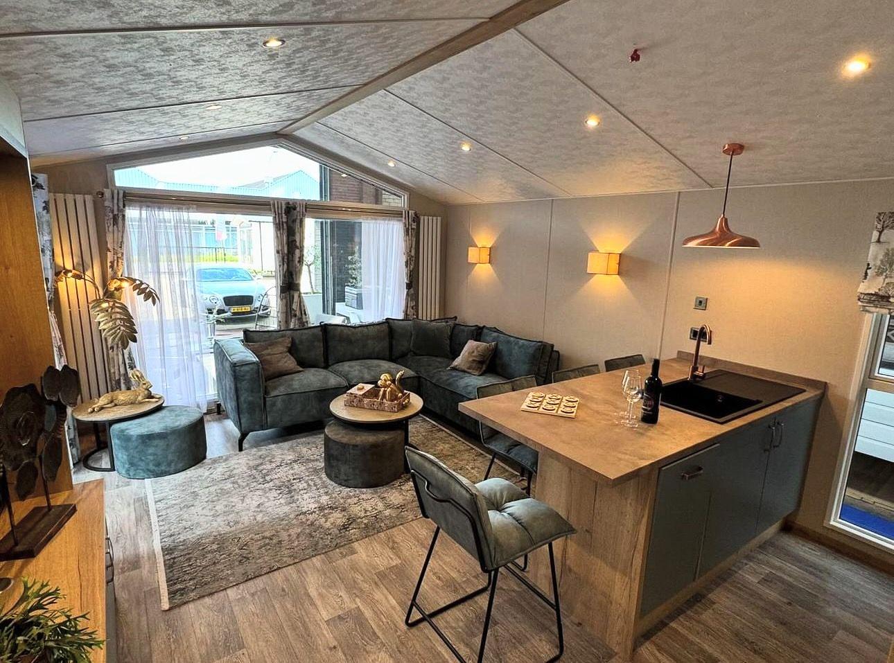Het prachtige puntdak en het verlengde overstek met sfeervolle verlichting geven het exterieur een tijdloze uitstraling. Binnen geniet je van centrale verwarming met designradiatoren, terwijl de moderne keuken is uitgerust met soft-close lades, een royale koel/vriescombinatie en een 4-pits kookplaat. De royale badkamer biedt alles wat je nodig hebt, met een grote douchecabine, luxe wastafelmeubel en een stijlvolle designradiator.